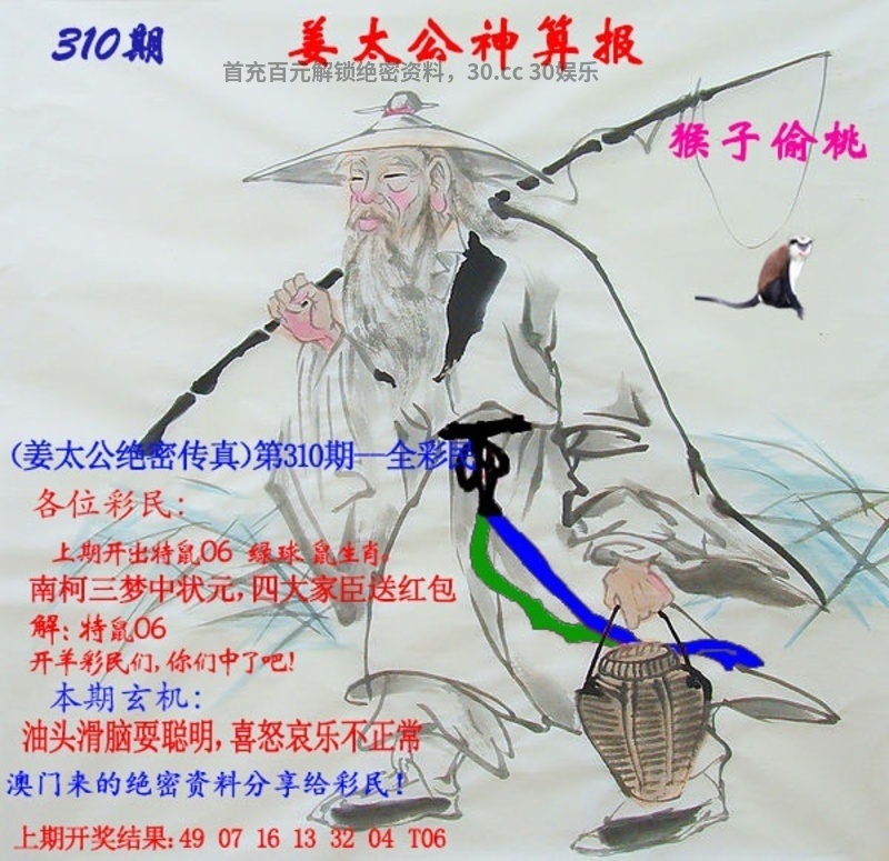 310期:上期开出特鼠06绿球鼠生肖。南柯三梦中状元,四大家臣送红包